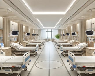 Desenvolvimento de projetos para hospitais, com foco em áreas não críticas e ambientes de internação, oferecendo conforto e funcionalidade para pacientes e profissionais.